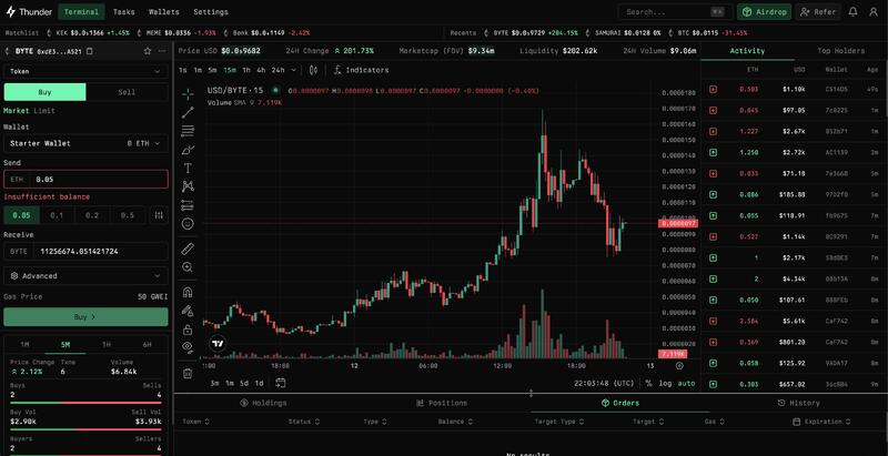Built 6 core features for MVP: market and limit trading, live charts, live P&L, wallet gen & import, token holder insights, sniping and copytrade automations.