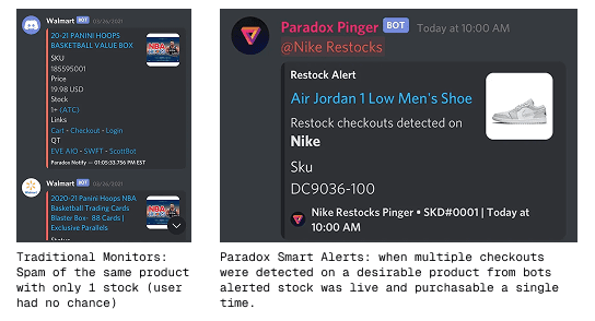 Smart Alert System: Traditional monitors alerted on everything. We built proprietary monitoring that detected when multiple bots successfully checked out, signaling real stock was available. This reduced spam by 90% and only alerted once on specific products worth chasing. This method also typically alerted our members minutes faster than competitors that were relying on manual staff alerts.